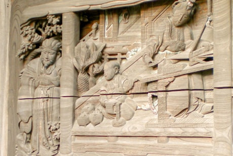 彫り出された人物の服装・表情などは幾分中国的ですが、その構図の躍動性、巧みな彫刻技法は見る人を驚嘆させる素晴らしい作品です。
