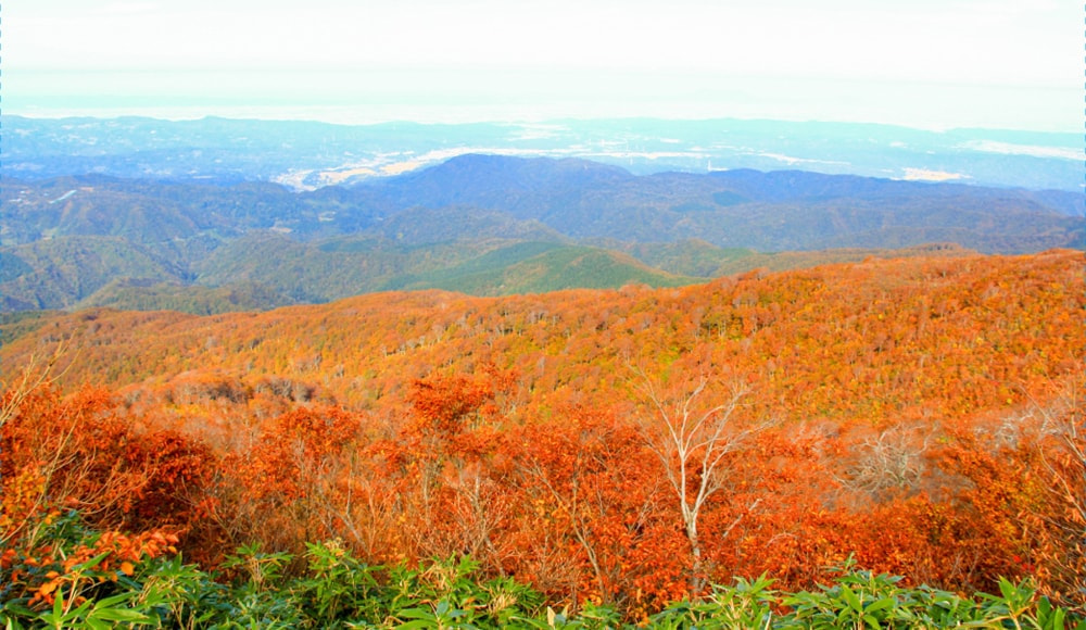 ブナの原生林や高山植物、 冬の大雪庇など年間を通して様々な表情を見せる、登山者に人気の山です。春には、東洋一と言われる「大雪庇」を、 秋には色鮮やかな紅葉を目指して多くの登山者が訪れます。