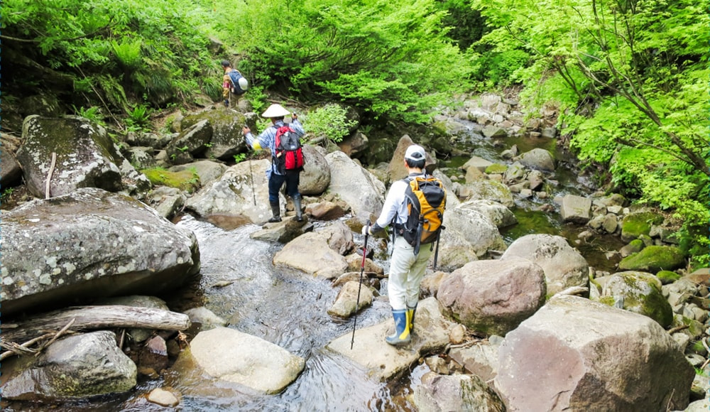 大小いくつもの川を渡り緩やかな登りと、壮大なブナの原生林が広がるコース。ブナ林を抜け稜線に出ると、守門岳北面が迫ってくる。中津又岳を経由し大岳までは、急緩の登りを楽しめる。