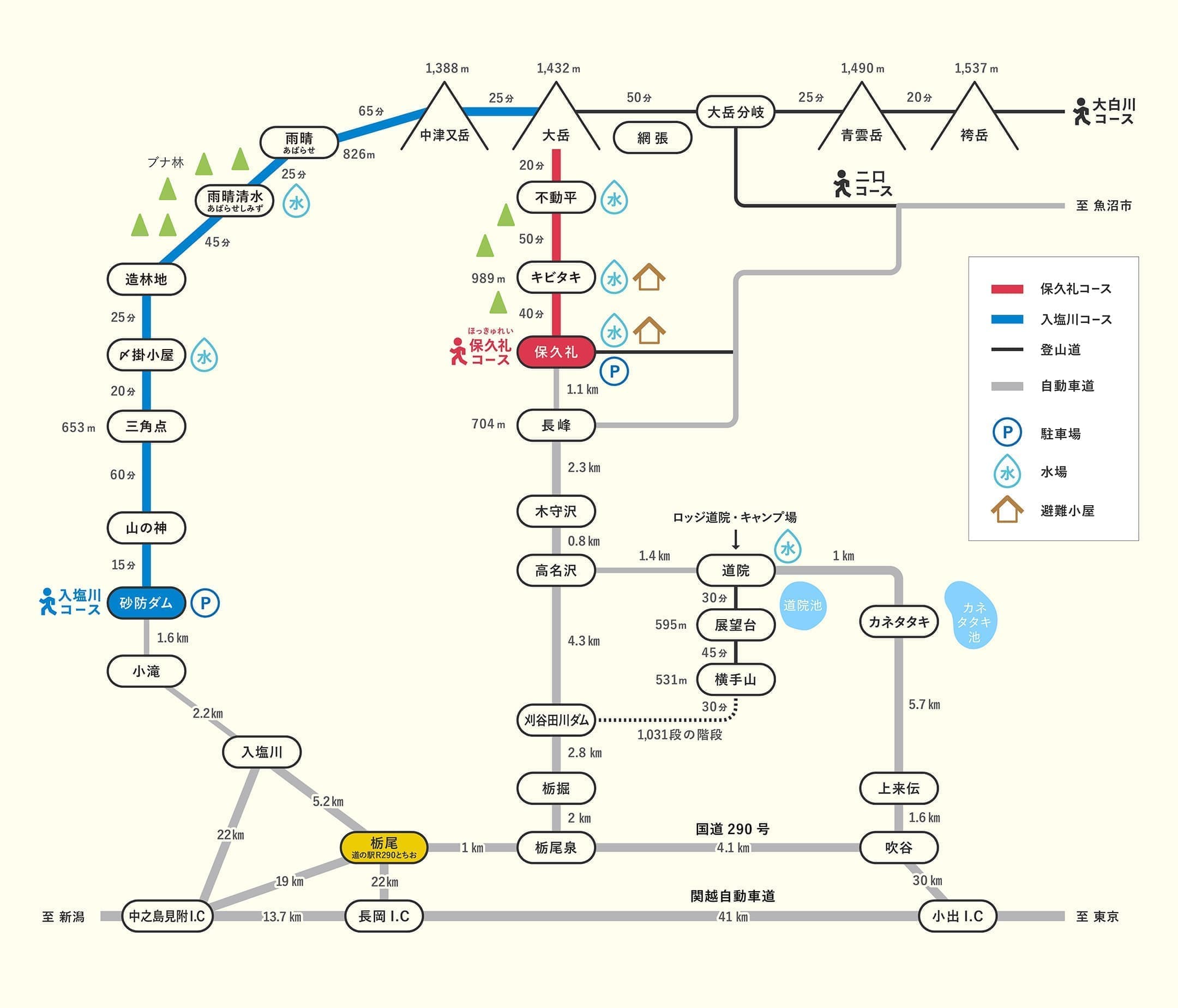 山開き区間 | 保久礼登山口、入塩川登山口から守門大岳山頂までの区間 |