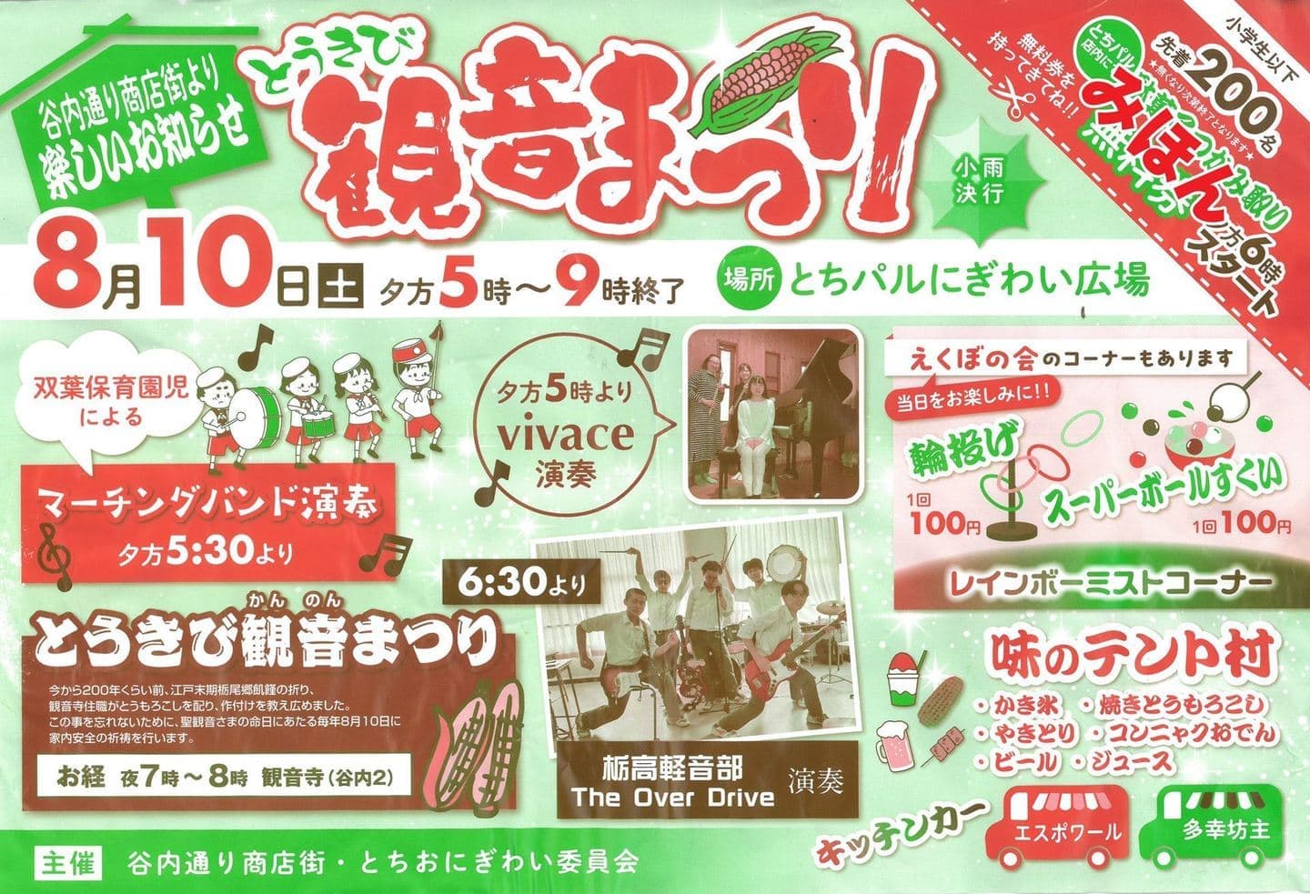 開催日時 | 2025年8月10日(日) (毎年8月10日開催) とうきび観音まつり 17:00~21:00 観音寺読経 19:00~20:00 |