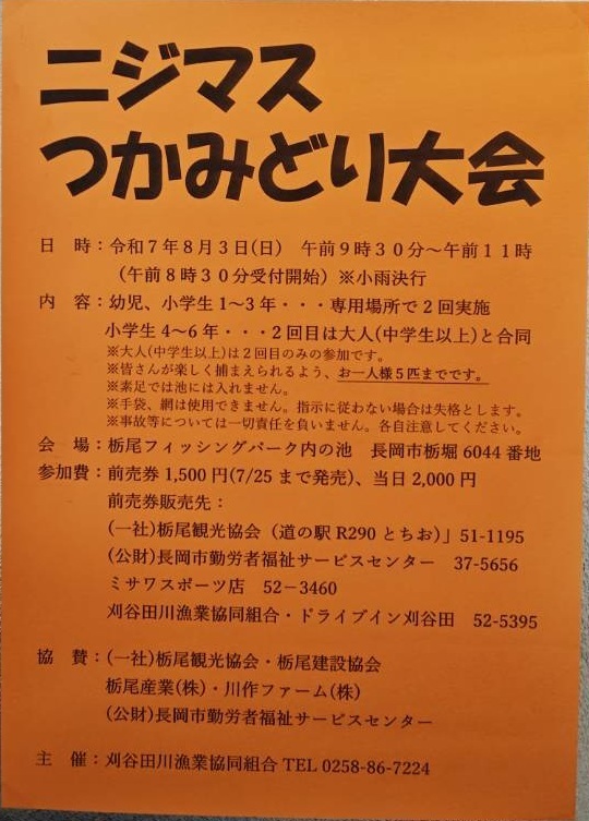 - 刈谷田川漁業協同組合(栃尾フィッシングパーク)0258-86-7224
