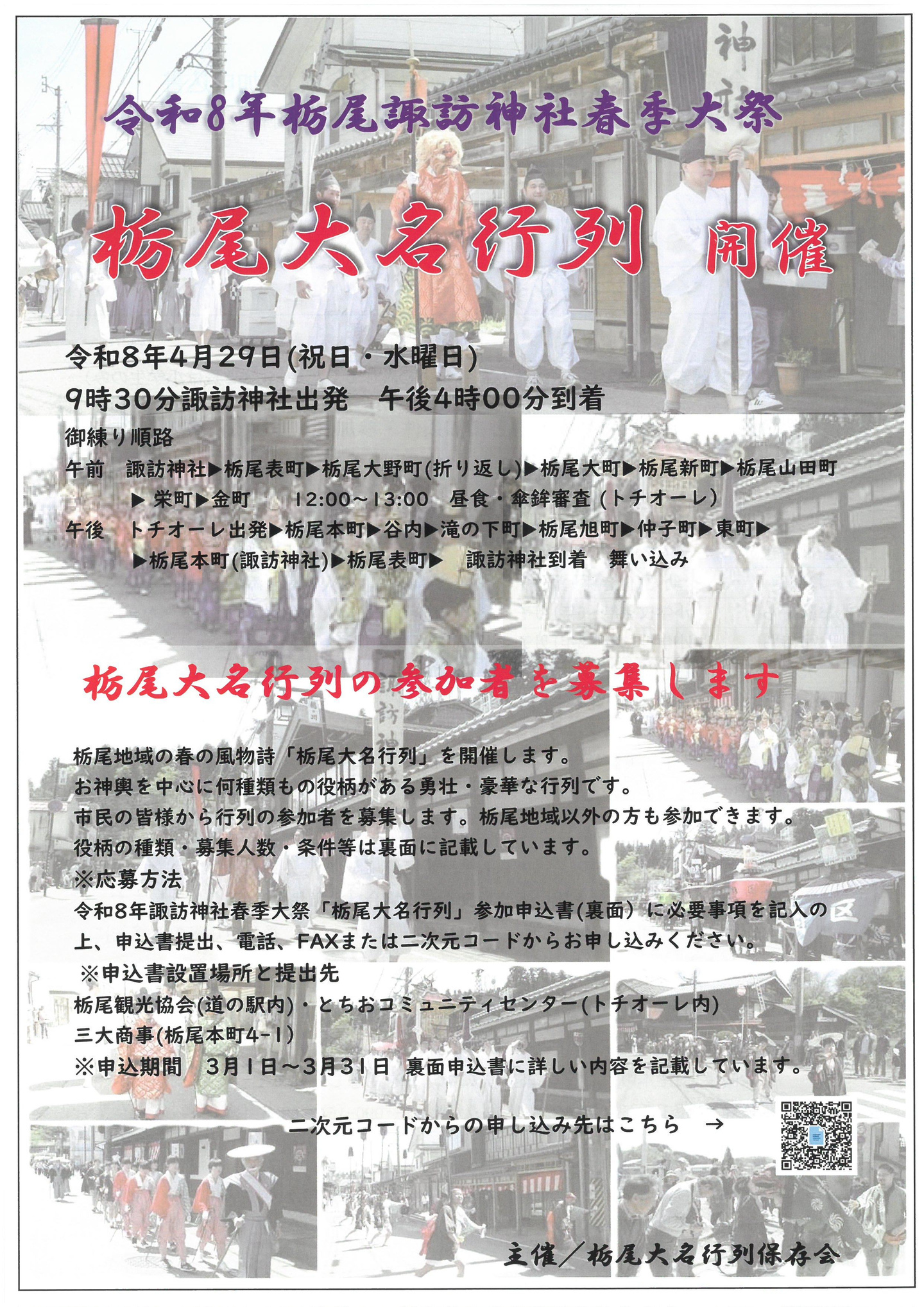 | 主 催 | 栃尾大名行列保存会 事務局:齋藤千香子 090-5957-7906・大竹啓一 090-1543-6966 |