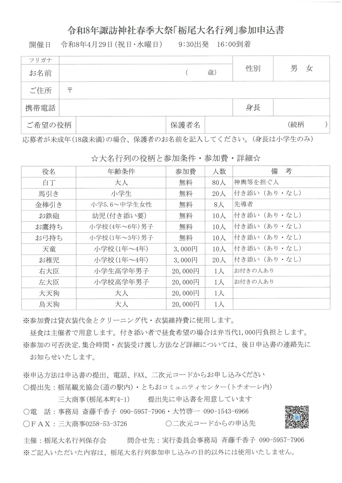 | 主 催 | 栃尾大名行列保存会 事務局:齋藤千香子 090-5957-7906・大竹啓一 090-1543-6966 |